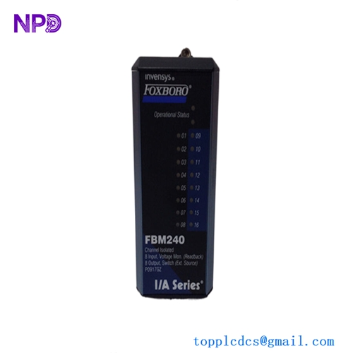 The Foxboro FBM240 (Part Number: P0917GZ) is a high-density, high-reliability discrete output module designed for the EcoStruxure Foxboro DCS (formerly I/A Series) automation platform. As part of the 200 Series Fieldbus Modules, the FBM240 provides the interface between the DCS Field Control Processors (FCP) and field-located final control elements such as solenoids, relays, and motor starters.